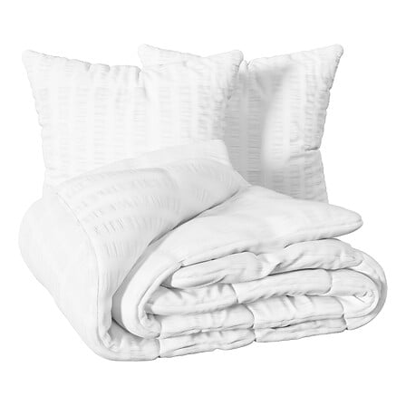 La parure de lit 3 pièces "Flora" Atmosphera, en double gaze de coton (144 fils/cm²), allie naturel et confort pour un lit...