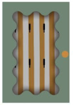 Rangez vos clés avec style grâce à cette boîte à clés murale design à la forme ondulée et au motif rayé ocre et blanc, mise en valeur par un fond vert sauge doux et tendance. Sa structure originale en fait un objet déco à part entière, tout en étant pratique et fonctionnel au quotidien.