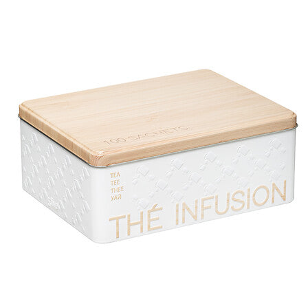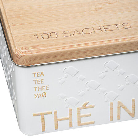 Rangez et conservez vos sachets de thé avec élégance grâce à cette boîte à thé et infusion au design épuré. Sa grande capacité, tout en apportant une touche déco naturelle à votre cuisine grâce à son couvercle effet bois.