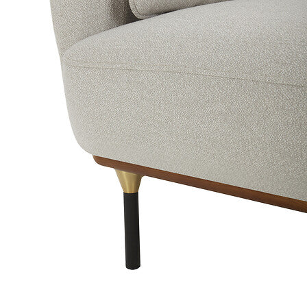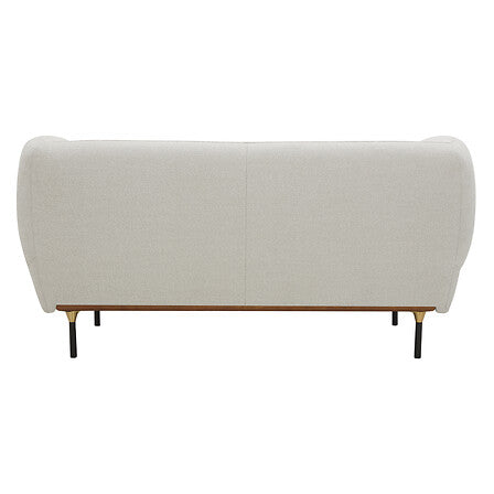 Doté d’un dossier haut et de coussins d’accoudoirs intégrés, ce canapé 2 places invite à la relaxation. Sa silhouette enveloppante contraste joliment avec ses pieds fins en métal noir et laiton, qui lui donnent une allure légère et moderne.