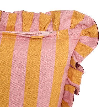 Apportez une touche de douceur et de fantaisie à votre décoration avec ce coussin carré rayé rose et bordeaux, orné de l'inscription "Chérie" en lettres blanches au centre. Ses volants froncés tout autour ajoutent une note rétro et charmante, idéale pour une ambiance romantique, féminine ou bohème.