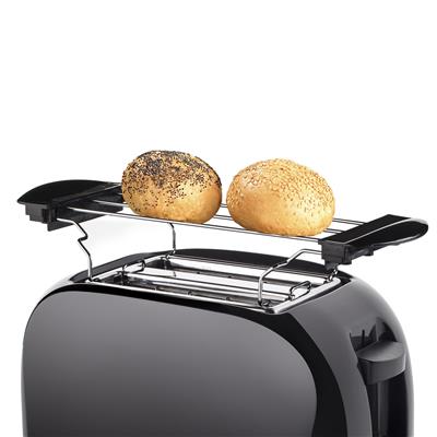 Ce grille-pain est idéal pour préparer rapidement des petits-déjeuners simples et efficaces au quotidien. Équipé de deux fentes, il convient parfaitement pour griller différents types de pains selon les envies.