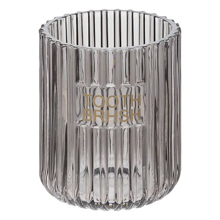 Ce porte-brosses à dents en verre transparent arbore un design élégant avec un relief vertical qui lui confère un aspect à la fois moderne et raffiné. L’inscription dorée « TOOTH BRUSH » ajoute une touche tendance tout en précisant sa fonction. Solide et esthétique, il apporte une note chic à la salle de bain tout en gardant les brosses à dents bien rangées.