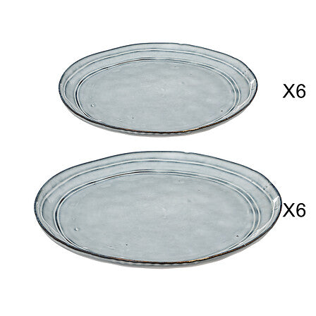 Service de 12 Assiettes en Grès – Émail Bleu-Gris