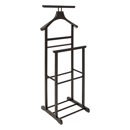 Apportez une touche d'élégance à votre chambre ou dressing avec ce valet de chambre en bois noir, pensé pour organiser soigneusement vos vêtements et accessoires du quotidien. Pratique, stable et au design intemporel, il vous permet de garder vos tenues toujours prêtes et impeccables. Un accessoire à la fois pratique et décoratif pour une routine plus organisée et élégante au quotidien.